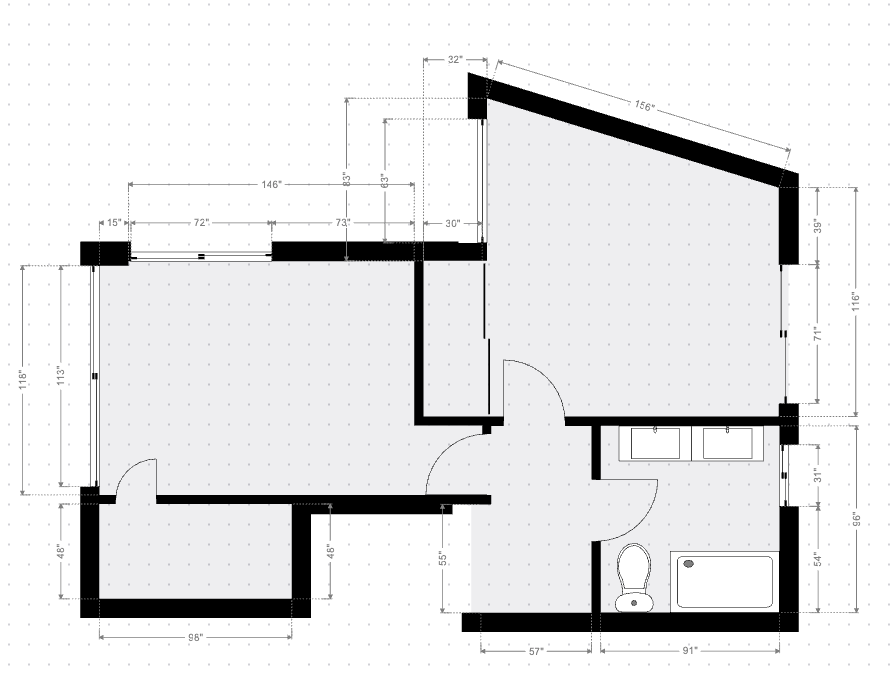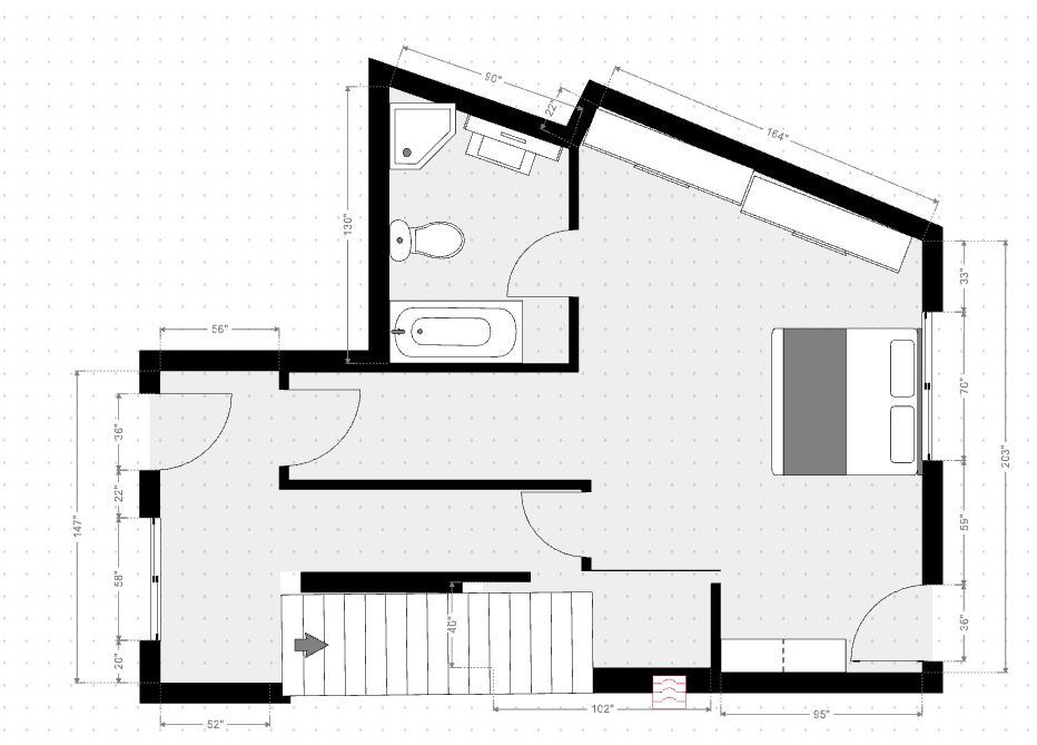Second Bedroom (Northeast Wing): An architecturally unique space featuring a dramatic angled wall along the northern edge. This room offers a private retreat.