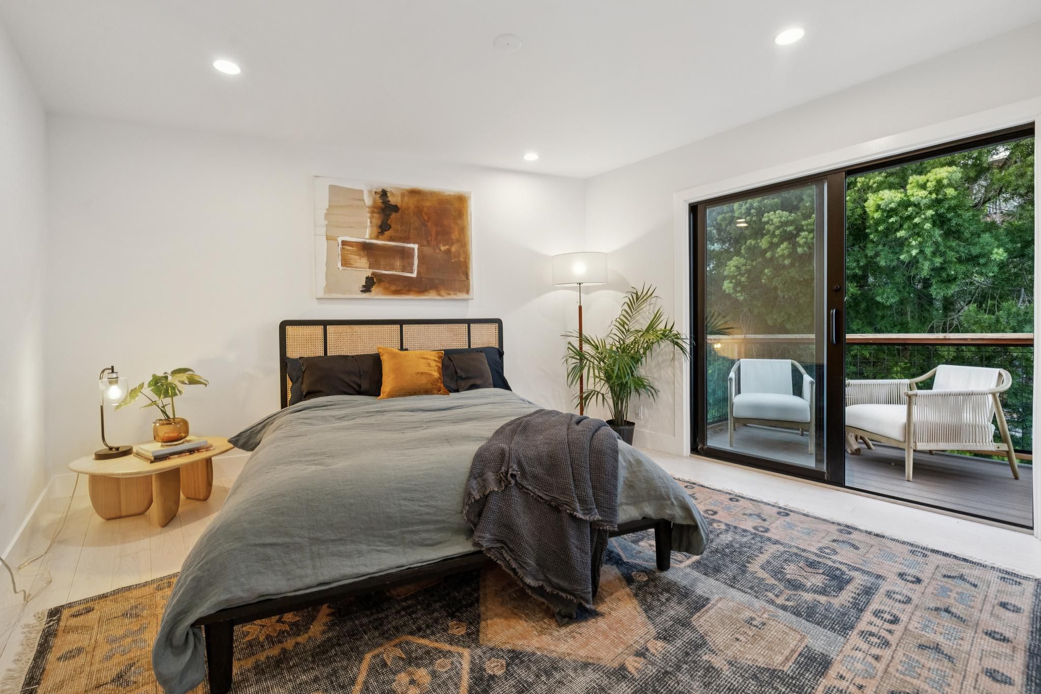 The living area extends effortlessly into the outdoors via a direct connection to the unit's primary exterior feature.